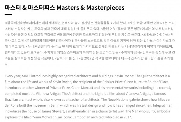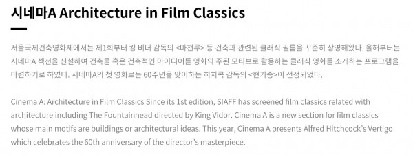 ㆍ작성일 2018-12-04 13:09:55 ㆍ조회: 3,943 ㆍ제목 [film] 제10회 서울국제건축영화제 본문 영화제 홈페이지 바로가기http://www.siaff.or.kr/ 이전글[film] 바다의 뚜껑 18.12.27 다음글[film] 나비잠 18.12.04