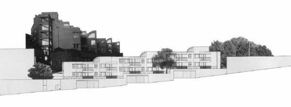 "계속 아시아 선수촌에서 못 했던 걸 해 보려고 애를 쓰던 단계예요. 큰 마당은 아시아 선수촌에서 해 보았지만 그것을 더 작은 스케일로 다시 나누는 것, 복층 유니트…. 그래서 해운대 빌리지는 세대 수가 몇 안 되지만 세대별 유니트가 굉장히 다양하고 복잡해요. 재미는 있어요. 북촌도 그렇습니다만 달맞이 고개도 길 자체가 경사져 올라갑니다. 그런 땅에서 바닥하고 집이 관계를 어떻게 맺을 수 있을까요. 또 이런 유형의 집합 주택에서 거주하는 이들의 일상의 접촉이 어떻게 일어날 수 있을까요. 그런 고민을 계속 했습니다. 거창한 공동 생활의 부담감보다는 일상에서 여러 가지 사소한 행위가 일어나도록 외부 공간을 구성해서, 그것을 통해서 연대감을 조금씩 느끼게 하는 편이 현실적이라고 생각했습니다. 그 하나가 이런 거죠. 길가하고 단지 안 사이에 걸쳐서 중간 영역이 끼워져 있습니다. 스케일을 조금씩 나누어서 계단과 경사로를 놓아가면서 공간을 나눴어요. 집이라는 개인 영역하고 공동으로 쓰는 영역 사이사이에 중간 영역을 둔 거예요. 경사를 올라가는 동안 조금씩 꺾여 가며 작은 공간이 생기면, 올라가는 길이 평평한 것보다 재미있죠. 마치 물고기들이 구불구불하고 수초도 좀 있는 구석에 더 많이 모이는 것처럼, 그렇게 자꾸 주름진 공간으로 만들자. 이게 사람들에게 공감을 줬나 봐요. 실제로 가 보면 여기를 즐겁게 쓰고 좋아들 합니다. 달맞이 고개 너머가 청사포잖아요. 거기 바닷가 마을의 석축이 눈에 띄더라구요. 비탈에 바닷돌을 쌓아서 축대도 하고 담도 짓습니다. 그 석축 방식을 가져와서 담으로 쓰려고 했는데, 건설 회사가 부도가 나면서 공사 관리가 잘 안 되어 엉뚱하게 강자갈을 쌓아 놓은 게 아쉽습니다."